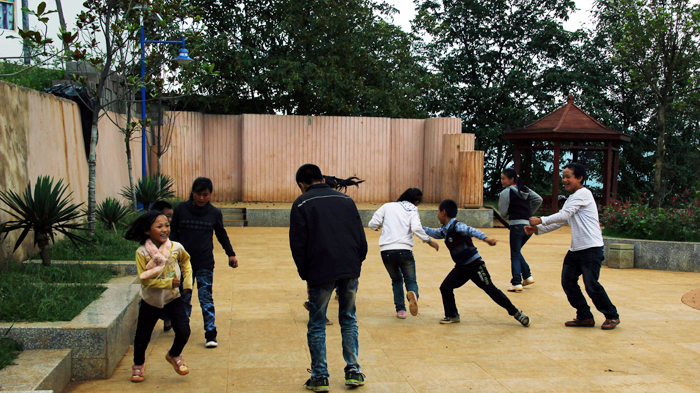 半山腰上,一个花园式的小广场呈现在记者眼前。在这偏远的小山村,有谁会想到会有广场之类的建筑?可是由不得你不相信,一个美观、实用而建有亭子、休息桌凳、有花有草的小广场上,一群孩子在快乐地玩耍。
