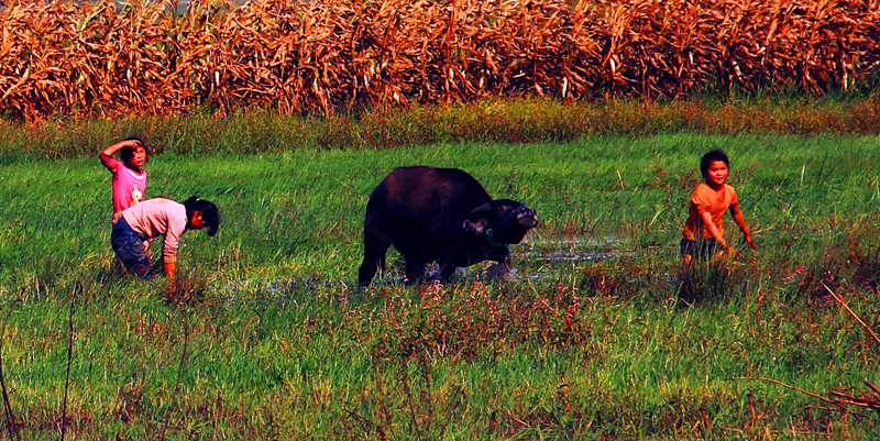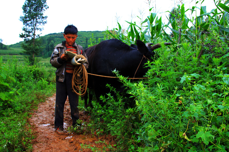这样周而复始的生活情景,差不多是王龙暑假真实的生活写照。跟着爷爷奶奶外公外婆,放牛放马,养鸡喂猪,砍柴挑水,看电视和玩,还有学习,也差不多是我县大多农村留守儿童的真实生活。他们没有夏令营,也没有特长班。大自然就是他们的乐园。