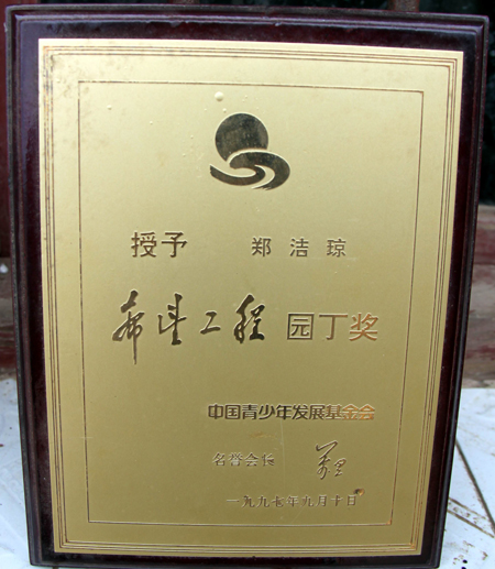 而她在1997年教师节被中国青少年发展基金会授予“希望工程园丁奖”。