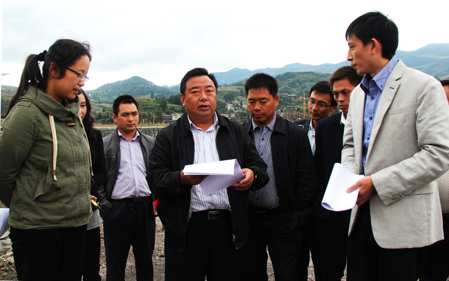 续断是一种中药材。属川续断科多年生草本植物,耐寒,忌高温,适宜在凉爽湿润的气候条件下生存,根因能“续折接骨”而得名。今年,二塘镇在调整产业结构的过程中,通过认真分析镇内自然气候条件,在梅花村102省道旁引导农民示范种植500余亩续断,丰收在望,预计每亩产值在5000元左右。沿途返回时,杨兴友在该镇领导的陪同下查看了续断种植基地。他告诉该镇领导,在搞农业产业结构调整时,只要善于思考,善于分析当地的地理和气候条件,尽管在高寒山区,也同样能找到特色农业项目,找到一些特殊的脱贫项目,真正让农民脱贫致富。图为杨兴友在调研中为二塘镇新政府办公驻地选址。(本报记者 叶启伟)