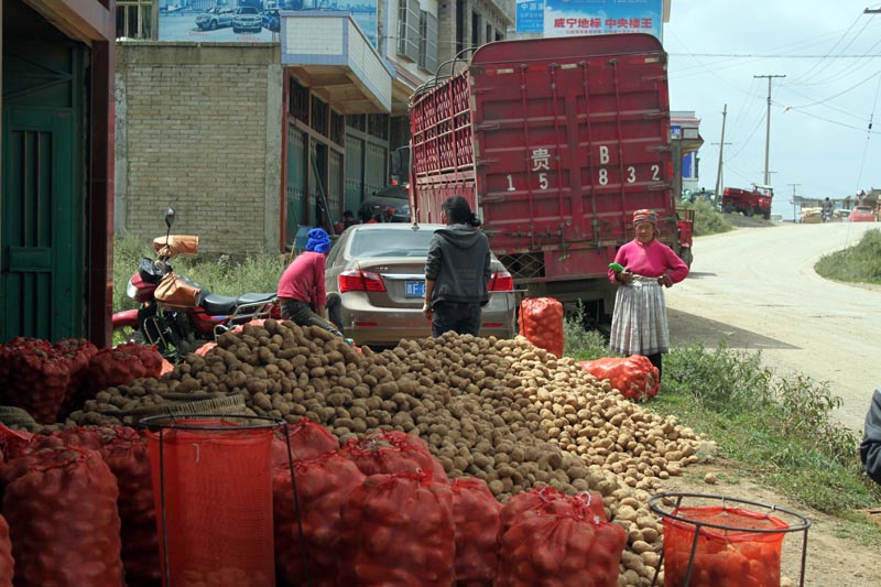 ▲今年,雪山镇联合贵州·泰乐有限责任公司、黔威农产品专业合作社和法地种植专业合作社,在该镇打造马铃薯原种扩繁基地1000亩,扩繁原种55万粒。图为收获的马铃薯。