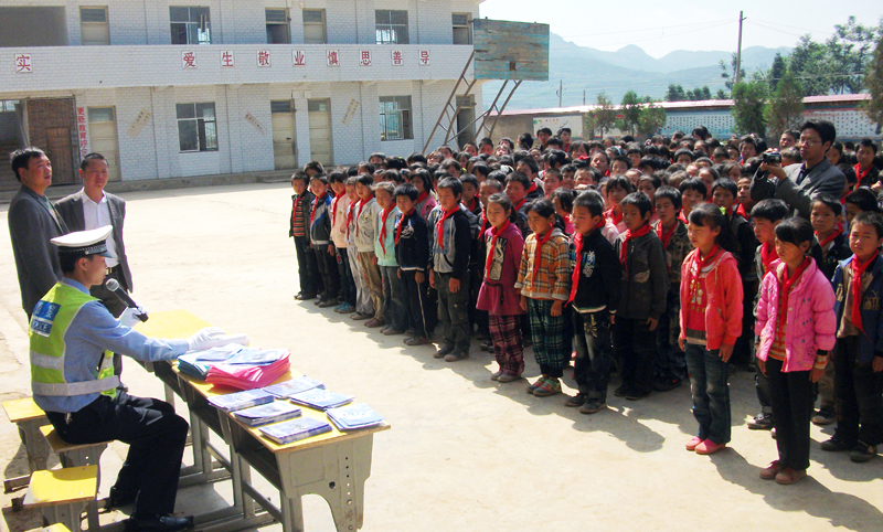 ▲近日,交警大队三中队深入辖区内小海小学等学校开展“交通安全进校园”活动,向学生讲授交通安全知识,发放宣传资料,为小学生上好“开学第一课”。图为活动现场。(刘飞龙 摄)