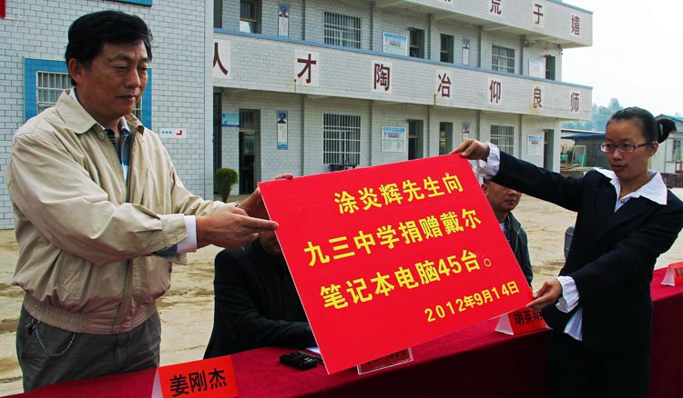 本报讯 9月14日,九三学社贵州省委主委、省政协常委、省农科院副院长黄宗洪率九三学社贵州省委专职副主委、省政协常委姜刚杰,九三学社贵州省委秘书长、省政协委员李梓,九三学社贵州省委委员、省地震局监测预报处处长张川涛,九三学社贵州省委调研处处长辛秀明,九三学社贵州省委宣传处副调研员胡英明等一行,把广州腾辉实业投资有限公司董事长、韶关市腾辉特钢有限公司董事长、叶剑英基金会副会长、广东客属海外联谊会副会长、九三学社广东省委企业创新研究会副会长、九三学社广东省直综三支社主委涂炎辉捐赠给我县草海镇九三中学全体教师的45台教育科研专用笔记本电脑送到老师手中。自治县副县长郭鹏和政府办、教育局等相关部门参加捐赠仪式。自治县副县长马树林主持仪式。