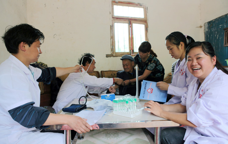 ▲自7月份开展保持党的纯洁性教育试点工作以来,金钟镇卫生支部积极组织医务人员和志愿者进村入户为空巢老人、贫困老党员、留守儿童等进行免费体验、免费治疗,并进一步完善居民健康档案。截至目前,已完成6个村的体验和义诊,查出可疑糖尿病3例、乙肝病例1例、高血压13例,并点对点对接专家及时对患者进行进一步复查确诊,深受百姓好评。图为近日金钟镇卫生院医务人员在新田村开展义诊活动。(本报记者 文贵 通讯员 王元勋 摄)