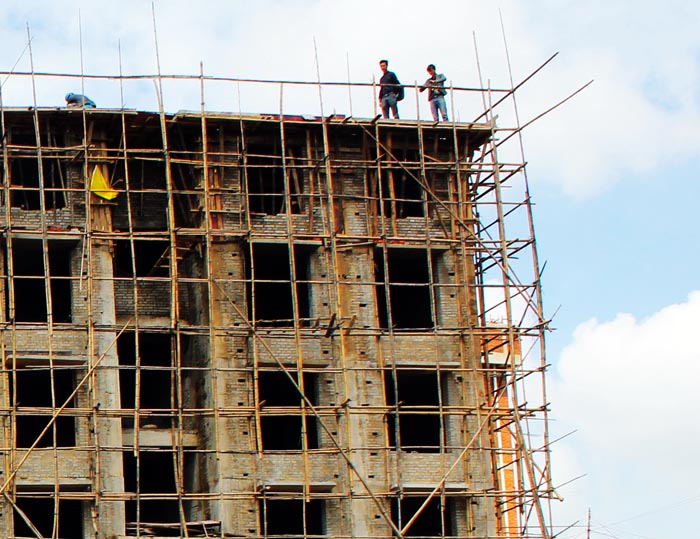 ▲9月14日,斗古乡教师周转房完成封顶仪式,进度为全县之最。据了解,该乡教师周转房二栋共40套,分中、小学各一栋,总投资190万元,建设面积1400平方米。目前,工程正在按计划进行,预计10月下旬教师入住。图为已经封顶的教师周转房一角。(袁亮 摄)