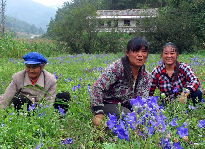 “今年我家种了2亩桔梗和半亩金银花,由合作社免费提供苗圃和种子,每亩500元的地租,预计收入1万多元。”领着孩子在桔梗地里拔草的村民卯昌花笑呵呵的告诉笔者。