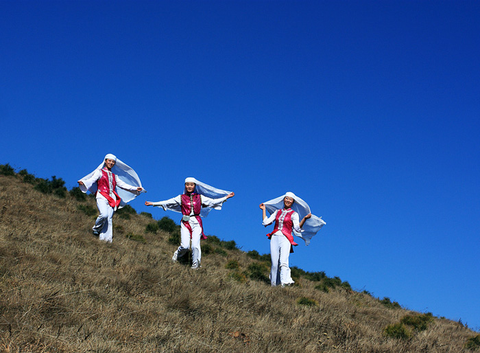 我随手将手中的一瓶矿泉水朝她递去,她站起身来,飞快地向着对面的山坡跑去。
