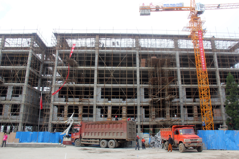 ▲总投资1.4亿元,占地33460平方米的威宁高级职业技术中学新建教学楼于今年动工,工程包括教学楼、实训楼、学生宿舍等。图为即将完工的教学楼主体工程。