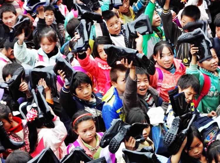 ▲石门乡山高路远,每到阴雨天气,山区孩子们的上学路变成了烂泥路,给很多学生上学带来不便。为此,当地政府购买500多双雨鞋免费发给路途遥远的学生们,保证孩子们能够正常上学。图为9月25日,石门乡云炉小学收到雨鞋后非常开心的小学生们。(陶凯 摄)