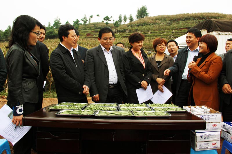 自治县人大副主任周跃宁,副县长马仲华,政协副主席罗永宽等参加出席会议。涉农的市直、各县直相关单位负责人和工作人员,自治县各乡镇分管领导和县直机关单位负责人。图为刘加文(前排左三)在市、县领导的陪同下参观草海镇荷兰豆标准化示范基地。