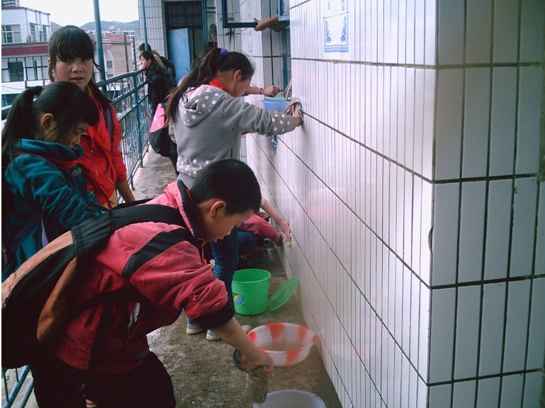 近日,威宁三小组织 “自己动手,美化家园”劳动。在两个多小时的劳动中,同学们始终以饱满的热情参与到活动中去。学校角落、教室里、走廊边,一片繁忙的景象。经过师生们共同努力、积极打扫,清理白色垃圾,铲除地面污泥,校园变得更干净,环境更美了。图为学生正在为学校打扫清洁。(马焓 摄)