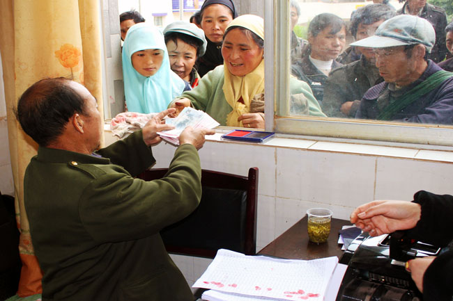 “双节”长假期间,斗古乡及时将最后一期农村危房改造补助资金发到群众手中。共发放资金838.03万元。图为危房户在领取补助资金。(袁亮 摄)