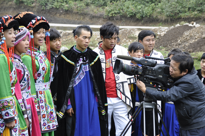 近期以来,由群众自发创作的歌曲《试验区小唱》在我县各族人民群众中广为传唱。日前,市委宣传部到我县拍摄该歌曲在群众中传唱的场景。图为拍摄现场。(李家委 摄)