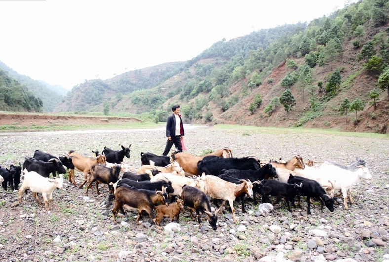 麻乍乡马摆河村民马占军家今年养羊40多只羊,每只可卖1000多元,年出栏10只,收入1万多元千元,在该村像马占军家一样养羊致富的村民有100余户。图为马占军家饲养的本地黑山羊。(本报记者 胡雍辉 摄)
