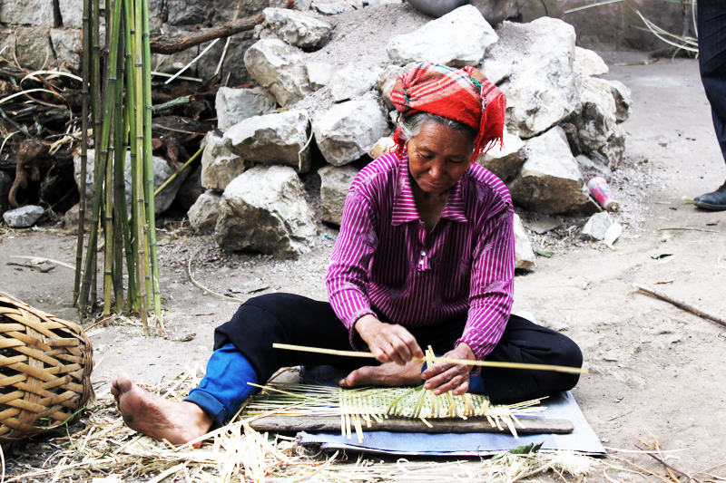 首先接受采访的是一位70多岁的老人名叫罗德芝,她正在盘腿坐着编织簸箕。攀谈间,罗德芝老人向记者介绍,她从16岁起就开始从事蔑竹编织,50多年来从未中断,因为是祖辈传下来的编织技术,罗德芝老人不愿把蔑竹编织技术失传,她要把这项技术传授给下一代,让编织这门绝技不断革新。