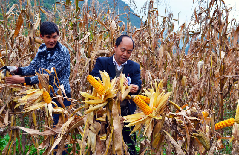 ▲10月17日,金钟镇农业技术推广站技术人员深入该镇大营、金钟等村高产玉米创建基地测产验收,平均亩产达760多公斤。图为农技人员在高产玉米样板基地测产。(王元勋 摄)
