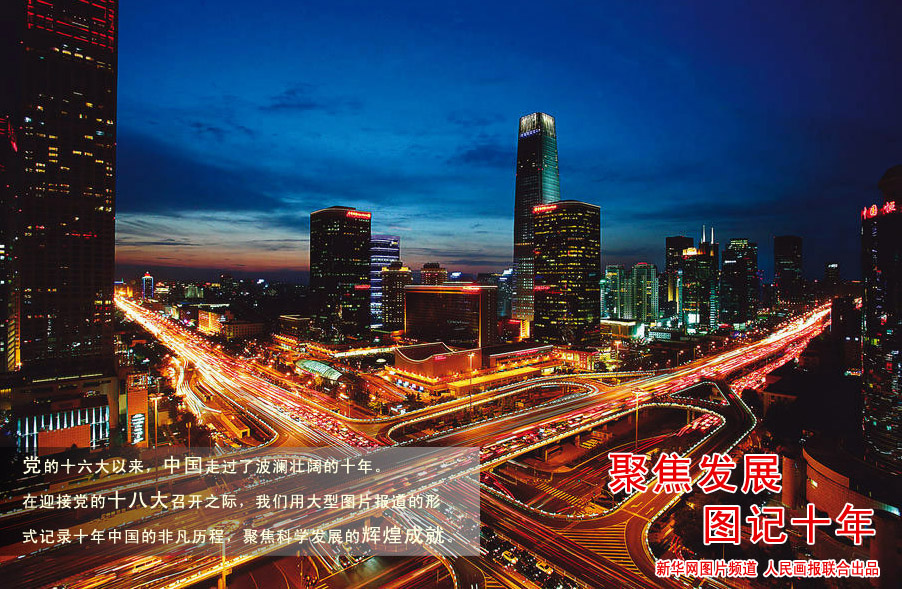 党的十六大以来,中国走过了波澜壮阔的十年。十年里,中国国内生产总值年均增长10.7%,从世界第六位上升到第二位,人均国内生产总值由1000多美元提高到5432美元,外汇储备超过3万亿美元;十年里,中国坚持调整和优化经济结构,提高经济发展的质量和效益,着力增强可持续发展能力;十年里,中国坚持经济社会协调发展,着力保障改善民生和促进社会公平正义,努力使发展成果惠及全体人民;十年里,中国的文化事业不断发展,精神文明不断提升,文化事业和文化产业在自觉、自信中走向自强,走向繁荣;十年里,中国经受住了许多灾害和风险的严峻考验,有效地应对了国际金融危机的巨大冲击;十年里,中国在国际上展现负责任的大国形象,“和谐世界”的理念得到广泛认同;十年成就辉煌,源于改革开放的伟大力量和中华民族自强不息的伟大精神,源于推动科学发展、构建和谐社会的不懈探索和努力。在迎接党的十八大召开之际,我们用大型图片报道的形式记录十年中国的非凡历程,聚焦科学发展的辉煌成就。