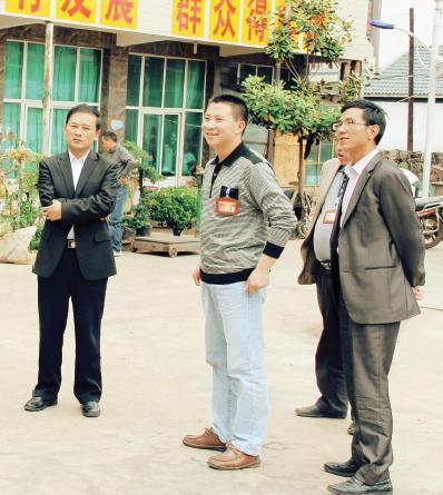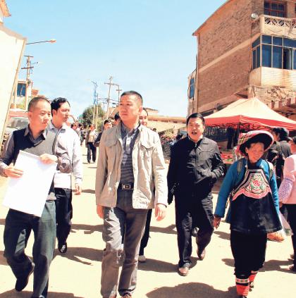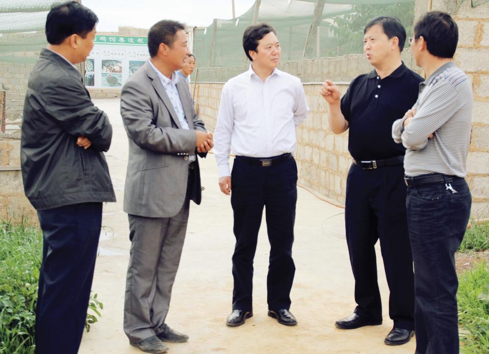 自治县委副书记、草海管理局党委书记冯兴忠(中)到迤那镇调研党员创业带富工程。