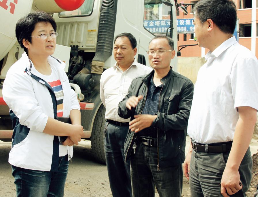 自治县委常委、统战部部长曾珊(中)到黑土河乡卫生院慰问地震中受伤群众。