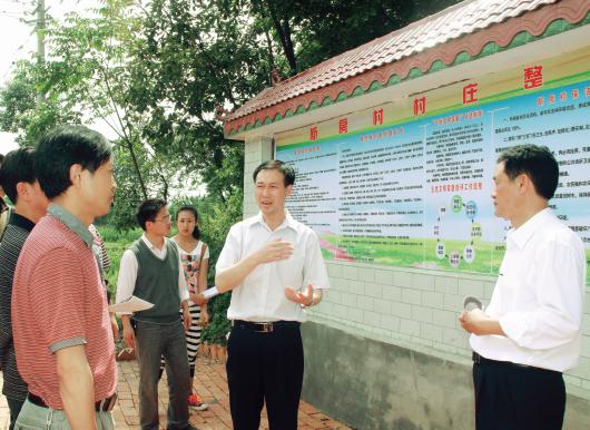 自治县委常委、组织部部长朱钧(左二)到新发乡检查指导党的纯洁性教育工作。