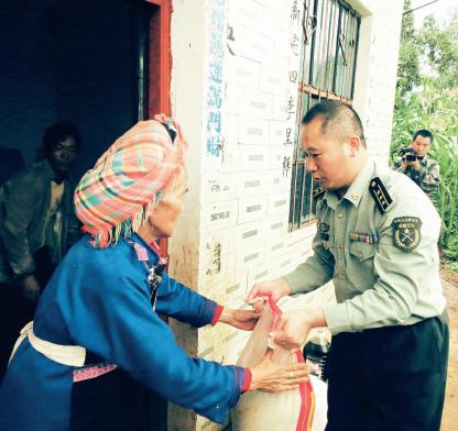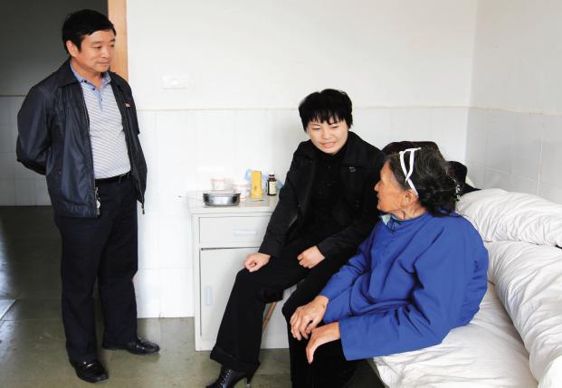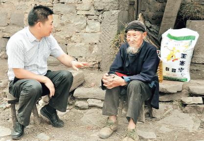 自治县常委、东风镇党委书记王维志(左)慰问贫困老党员。