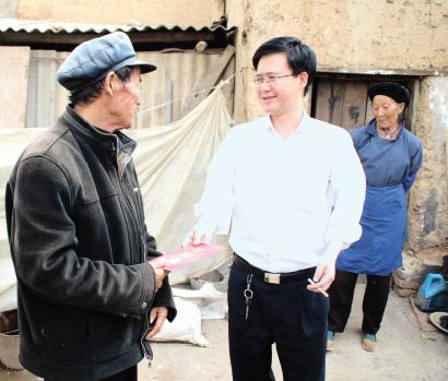 自治县政协主席禄俊(中)到“四帮四促”联系点慰问困难党员。