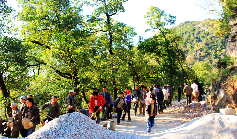 10月25日,笔者在牛棚镇营山村看到,施工人员正忙着修路。据了解,牛棚镇雨朵工委所辖6个行政村,由于交通不便,严重制约当地的经济发展,今年,县交通运输局投资2100万元为雨朵工委修建一条长28公里,宽4.5米的通村油路,工程完工后,可解决1万多群众出行困难。图为施工现场。(冶付红 摄)