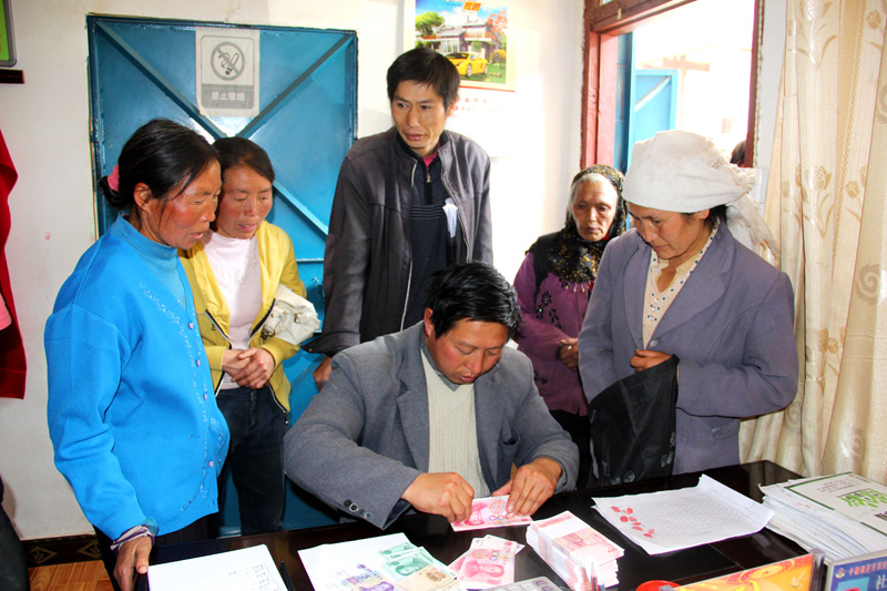 ▲近日,牛棚镇为20个行政村发放2011年和2012年危房改造补助款,共发放补助资金867万元。图为工作人员正在发放危房补助款。(冶付红 摄)