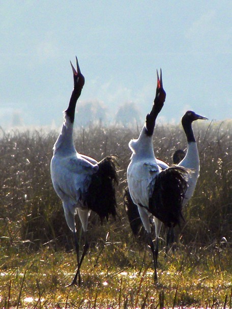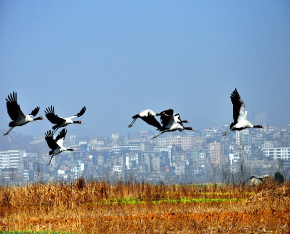 黑颈鹤是世界上15种鹤中最晚被发现的一种,也是世界上唯一生活在高原的鹤类,现在全世界仅有7000多只,而每年来草海越冬的黑颈鹤就达到1000只以上。