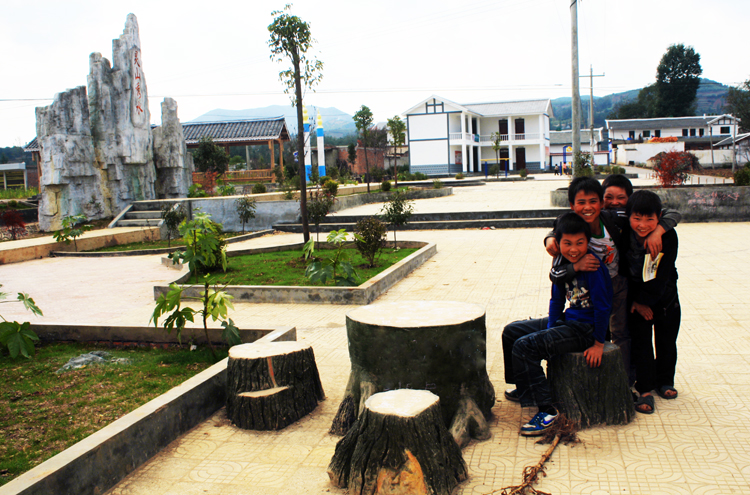 ▲秀水乡人民小广场占地面积5200平方米,亭台楼阁、假山池沼、游乐设施一应俱全,成为当地群众休闲玩耍的好去处。图为秀水乡孩子在广场上读书娱乐。(记者 龙胜 摄)