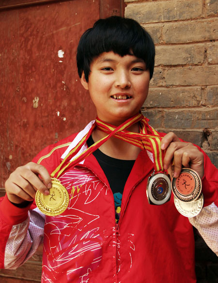 走在乡村里,乡亲们逢人便说,别看王孟兴从小听不见,讲不了,现在人家小小年纪就拿冠军,真是了不得……