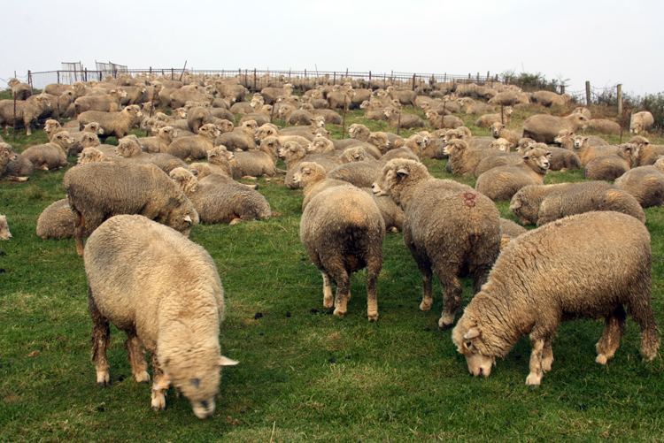 ▲勺圃草场始建于上世纪八十年代初,位于雪山镇境内,隶属农业厅直管。成立之初,该草场从新西兰引进绵羊300多只,目前已发展到1000多只,种草面积达7900多亩,带动周边300多户农民发展种草养羊,年收入达20多万元。图为草场饲养的新西兰绵羊(本报记者 王德聪 摄)
