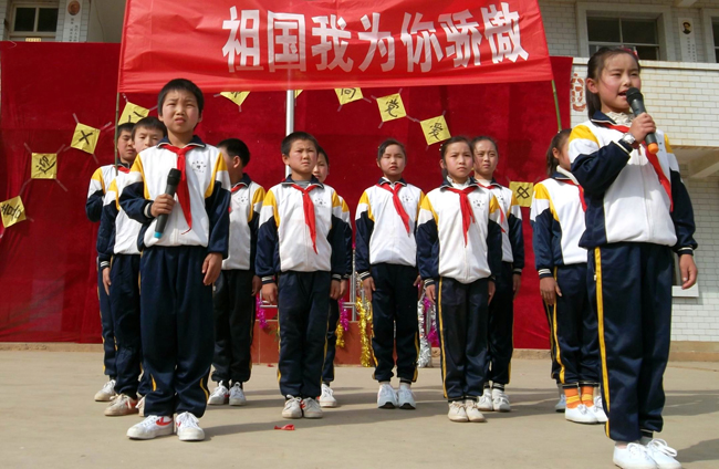 11月6日,观风海镇七舍学校举行以“红心向党、爱我中华”为主题的诗歌朗诵与演讲比赛活动,喜迎“十八大”的召开。比赛进行了《振我中华,扬我国威》、《沉重而美丽的中国》等原创作品的演讲,《祖国要腾飞》、《奉献祖国》等经典的诗歌朗诵,全校22个班1223名学生及54名教师参加了此次活动。图为学生们在演讲《祖国啊!我为你骄傲》。(赵霞 摄)