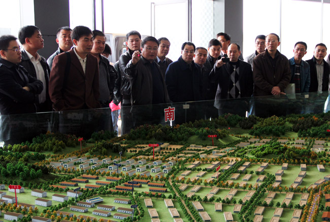 工能、投促、教育、发改等相关单位负责人参加座谈会。图为考察团在参观经济开发区沙盘。