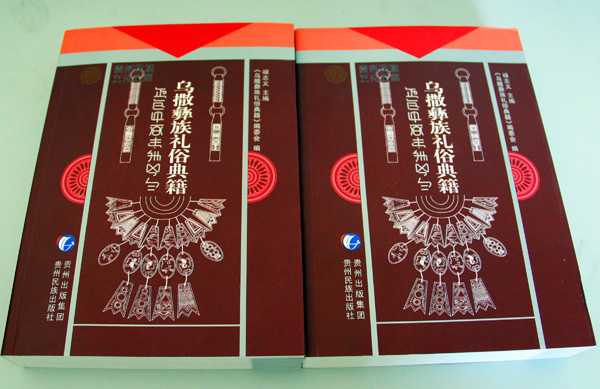 ▲日前,由威宁彝学会编写的《乌撒彝族礼俗典籍》一书正式由贵州民族出版社出版发行。全书分为“生育礼仪篇、婚嫁礼仪篇、丧葬礼仪篇、节日礼仪篇”4部分,共104个标题,12000多行,90余万字。该书采用国际音标,彝汉文对照,疑难注释,通俗易懂,便于传承。(本报记者 李玉荣 摄)