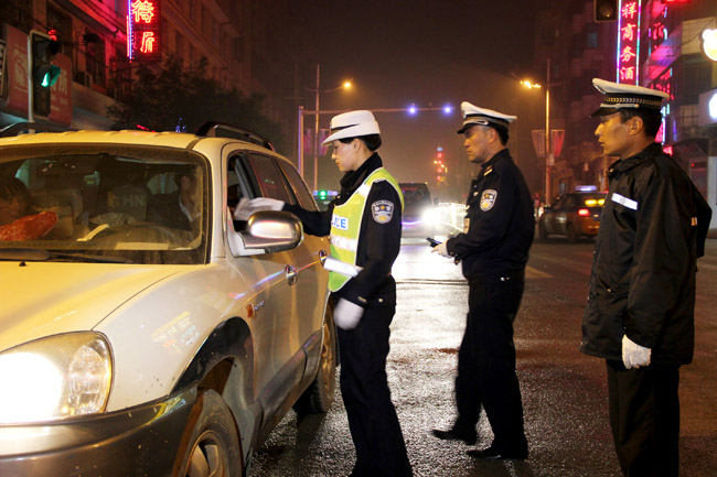 据统计,五次行动中,共投入警力885人次,警车105辆次;设置检查点15个,投入执法装备237个次;共查验各类机动车7569辆,查获酒后驾驶1起,涉牌涉证41起,未按规定使用安全带5起,其它违法348起;罚款344人,暂扣车辆51辆,暂扣驾驶证47个,收缴非法牌证16个,行政拘留6人,有效地震慑了各类道路交通违法行为。图为公安局交警正在执法。