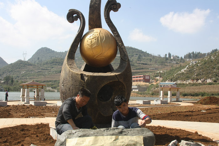 走进炉山镇海舍湖,青山怀抱下的湖水清澈迷人,令人流连忘返,湖边,几个钓鱼爱好者正在悠闲垂钓,好一处人间仙境。据了解,近年来,该镇大力发展乡村旅游业,将海舍湖打造成旅游景区,并积极争取市生态办投资400万元对该景区进行修建,目前,沿海油路、海舍湖小广场、休闲亭、海舍之心等旅游附属设施即将完工,预计年底建成并接纳外来游客。图为工人正在对海舍之心进行打磨。(本报记者 王德聪 摄)