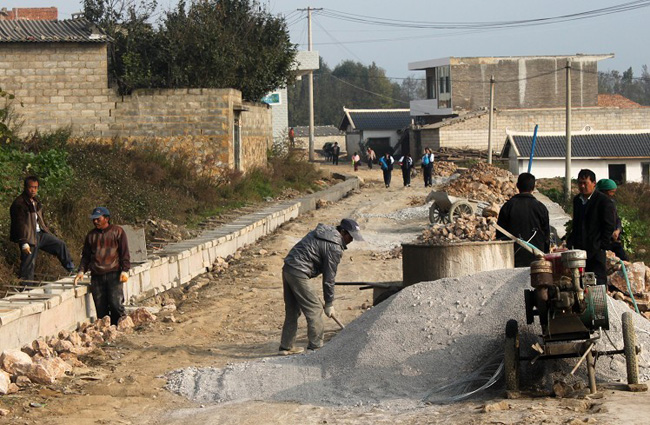 11月14日,记者在草海边看到,环海公路工程正在紧张施工。据了解,该工程由自治县交通局招标修建,工程分为两个标段,第一标段13448米,第二标段12312米,从草海码头至杨家院子,赵家院子至管家院子。环海公路的修建,为草海旅游观光的游客提供了方便。图为建设现场。 (记者 胡雍辉 摄)