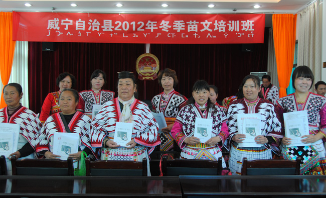 据悉,本次培训从11月18日举行开班仪式起,将利用每周六、周日进行为期一个月的苗文培训;培训人员为威宁城区苗学会成员及热爱苗文的居(村)民;培训内容为滇东北苗文改革方案和昭通地区民委、威宁县民委1983年10月编印的《苗语看图发音》教材。