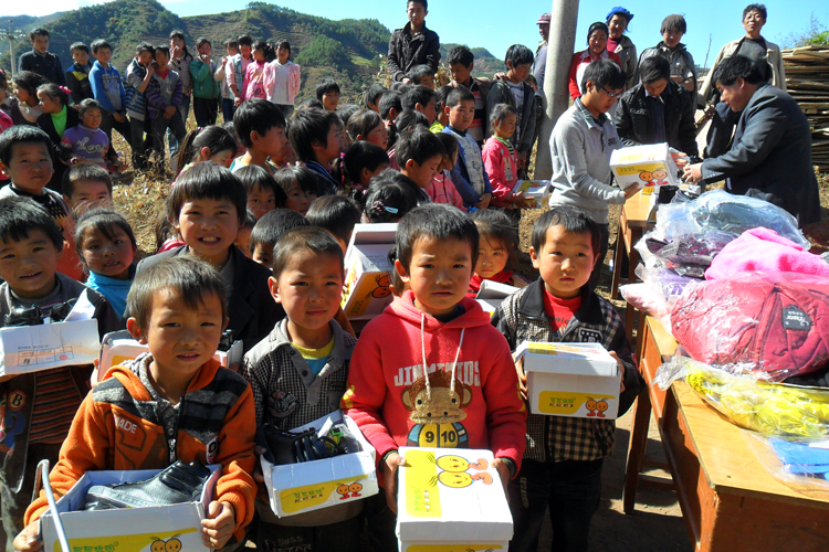 ▲近日,受捐赠方淘宝网风民“要要落地”的委托,黑石头镇卫生院带着100多件衣服和50双鞋子来到该镇联营小学,为这里的100多名留守儿童送上礼物。据了解,今年,“要要落地”先后为该镇捐赠爱心物品5次,衣物达500套,鞋子1000双,捐赠物品有棉衣、鞋套、学习用品等。图为领到留守儿童新鞋。(通讯员 姜相 摄)