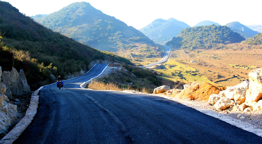 11月19日,一位游客骑着摩托在柏油路上向百草坪风景区飞驰而去。当日,长达8公里的百草坪风景区景观油路正式铺通。