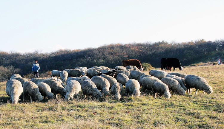 ▲雪山镇勺圃草场是当前贵州最大的人工草场,集种草养畜和休闲旅游观光为一体,总面积达11000余亩。该草场还带动当地农民发展畜牧业,年增收万元以上。图为养殖户在草场放牧。(文 贵 摄)
