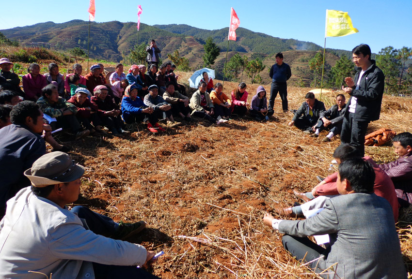 在哲觉镇,党员干部们深入田间地头,在农家草垛上、在田埂上与广大群众席地而坐,面对面交谈、心连心沟通,把党的十八大精神带到田间地头。党员干部们运用通俗易懂的语言,将“十八大”精神向广大群众进行了详细讲解,并结合自身发展实际,解答了人民群众最关心、最直接、最现实的问题。图为党员干部深入田间地头讲解党的十八大精神的场景。