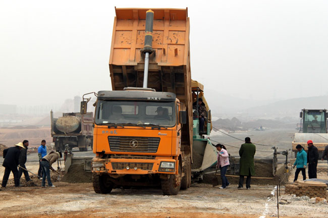 12月9日,气候略显寒冷,在贵州威宁经济开发区五里岗工业园区,工人们正在忙着铺设园区大道。