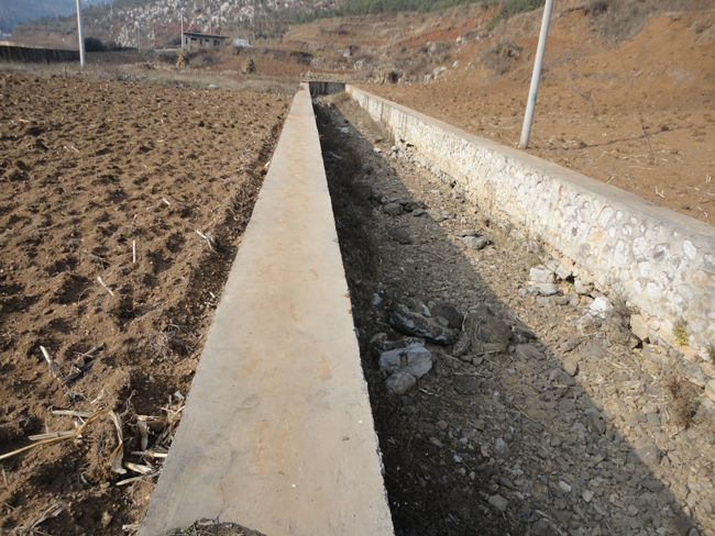 在黑鱼洞旁边5米处,有一座贴瓷砖的漂亮小房子,经打听在洗衣服的人,方知那是水泵房,果然一看,里面有两个机房4台抽水机。房外,有两条粗大的水管,分别向坡上人家伸去。一条是拉向盐仓镇山上的卯家坡,另一条是牵向草海镇的高坪村。