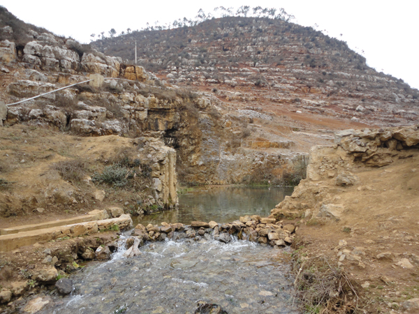 往洞口仔细一看,一潭微少的泉水,由于出量小,怎么也爬不出来,在宽宽的河床上奔腾。要想与花鱼亲密接触,更只有在想象里了。