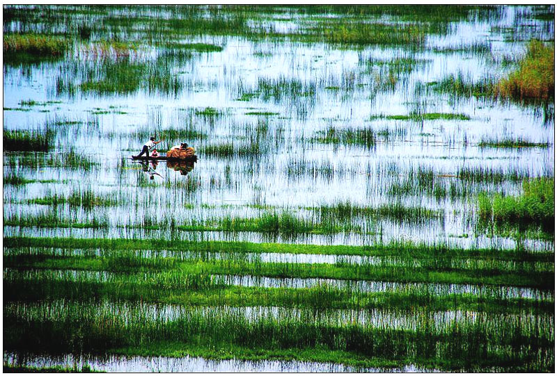 是的。村庄和湿地如今都渐巳繁华起来,所有与草海有关的生活在沸腾之中也会隐约透露出一些无语的梦,偶尔的鸡犬之声显得更加新鲜和亲切。因草海而生动的日子,被木船上舞动的撑竿不断地推远、拉近,深深浅浅的世俗随着湖面的渔歌,渐渐地飘出各自的滋味。