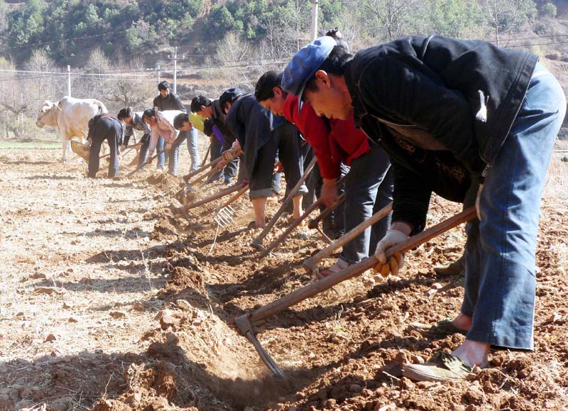 ▲时下,正值春耕繁忙季节,也是中药材种植的最佳季节,哲觉镇家家户户忙着种植中药材,处处呈现繁忙的景象。图为对面坡村村民正在种植中草药。(孔春朴 摄)