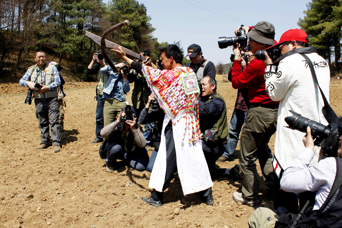 本报讯 3月17日、18日,来自四川、广东等七省市区近百名摄影师组成采风团,走进我县板底、盐仓、秀水、雪山等乡镇,进行实地摄影活动。市委外宣办、县委宣传部相关负责人陪同。3月17日,百名摄影师到板底乡采风摄影彝族风情,实地拍摄了撮泰吉、铃铛舞、弹月琴、阿西里西等,并驱车赶往盐仓拍摄百草坪风电场。3月18日,采风团深入秀水,实地拍摄伊斯兰民居和回族风情;还深入雪山,拍摄苗族的拦路酒、芦笙舞、射弩等民俗活动。