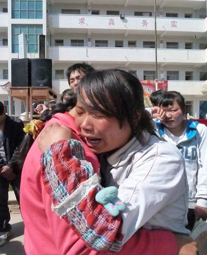 ▲3月19日,由中国励志讲师团朱峰老师主讲的感恩励志演讲报告在小海二中举行,此次演讲活动,给该校全体师生上了一堂难忘的感恩课。图为深受感动的学生激情拥抱。(洪 波 浦永贵 肖宏权)